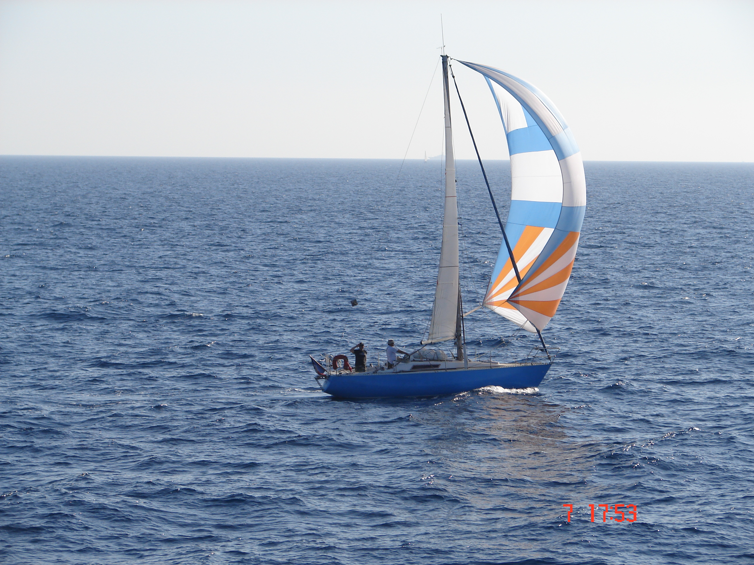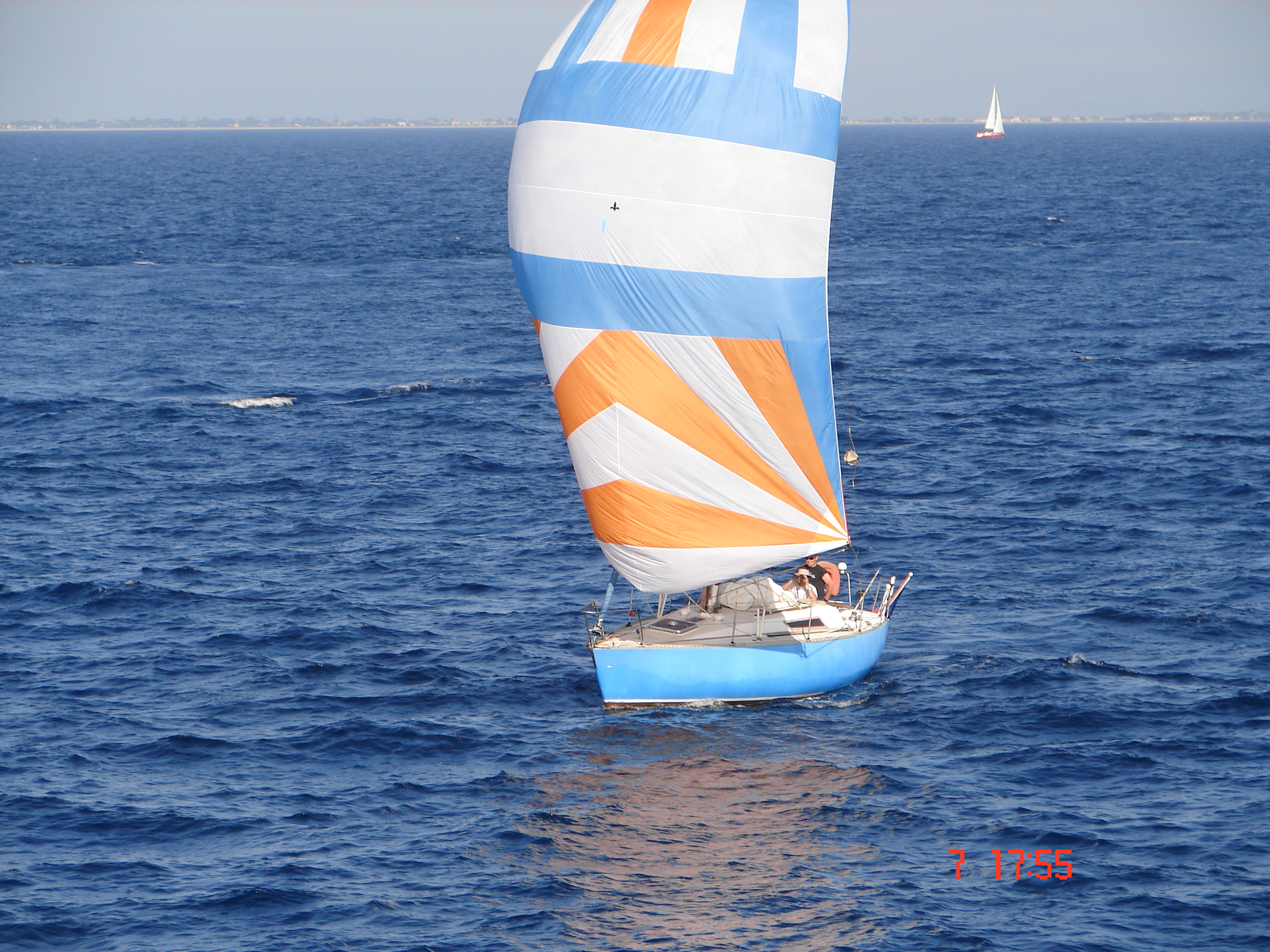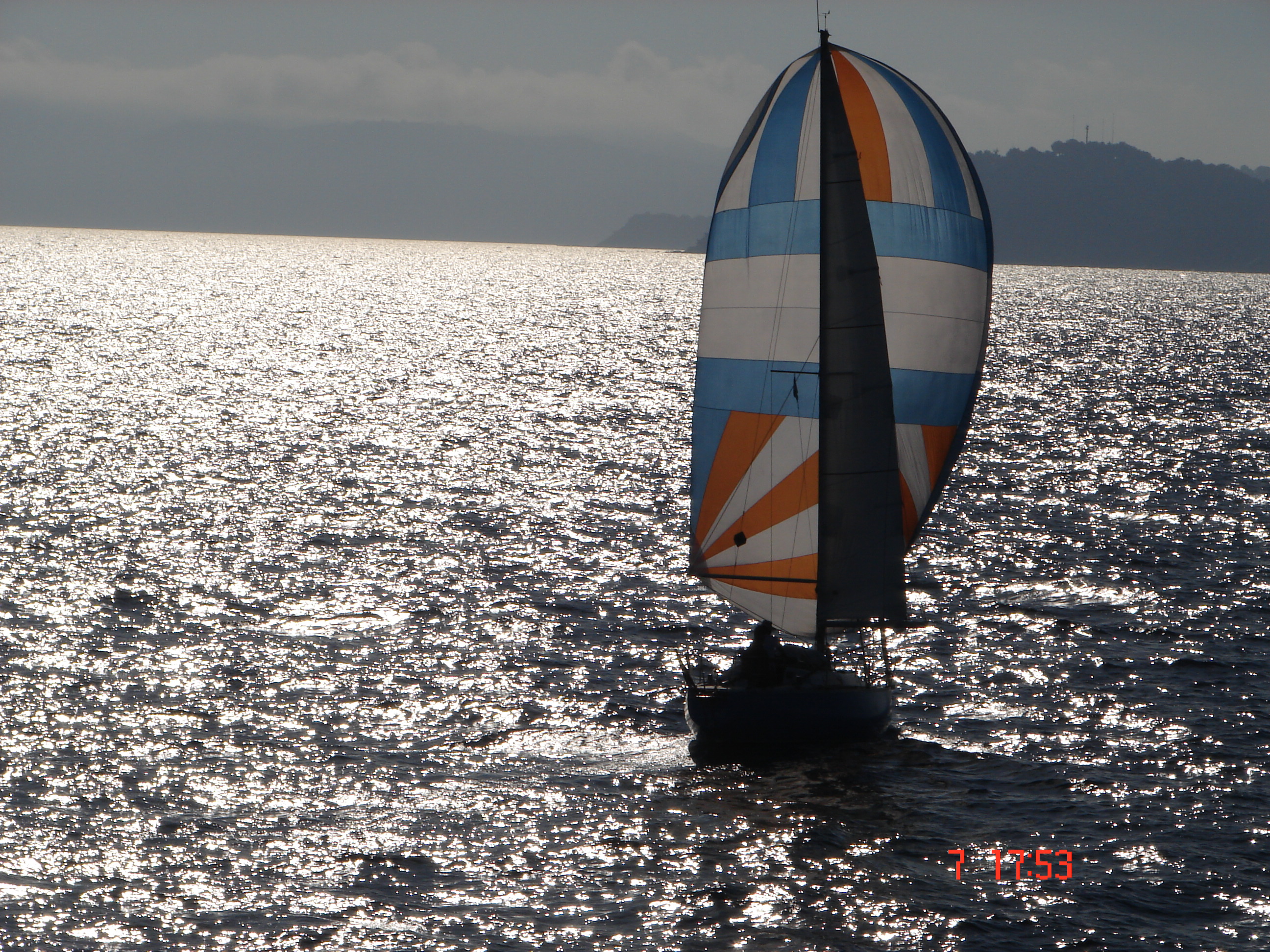 conditions idéales pour cette mini croisière: matin pour l aller vent SE 15 a 20 nds donc quelque bords de prés bon plein et l après midi pour le retour 10 a 15 nds de E SE donc spi tout le long