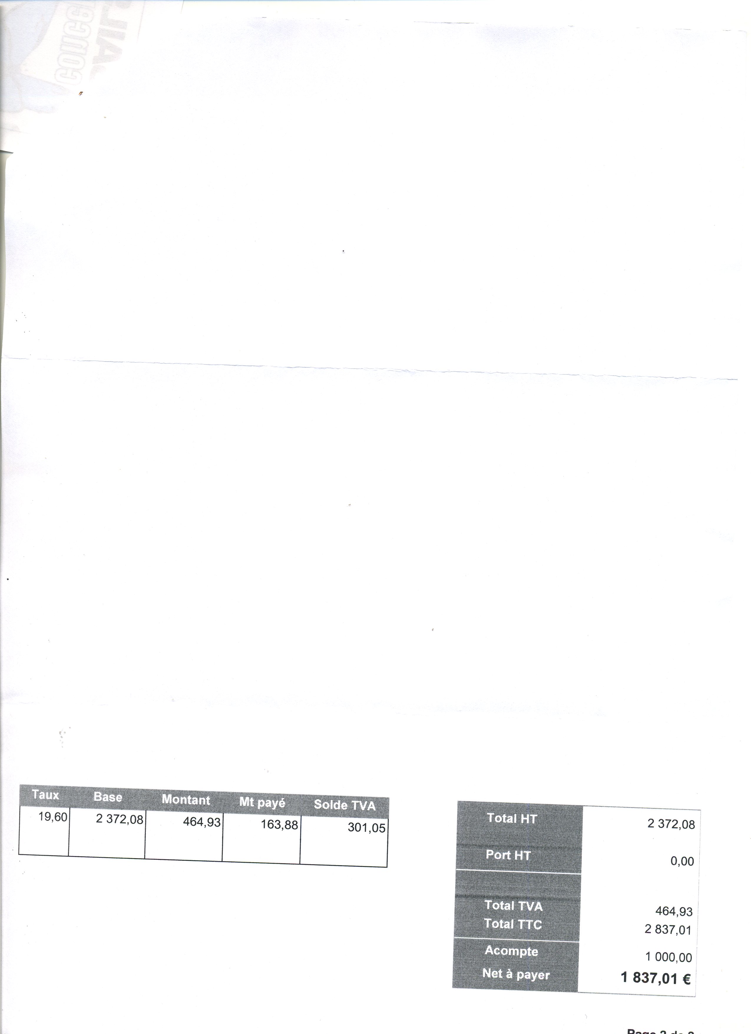 (Facture en PJ décembre 2006, 2800 eur TTC, je confirme 3 bandes de ris et pas 2)