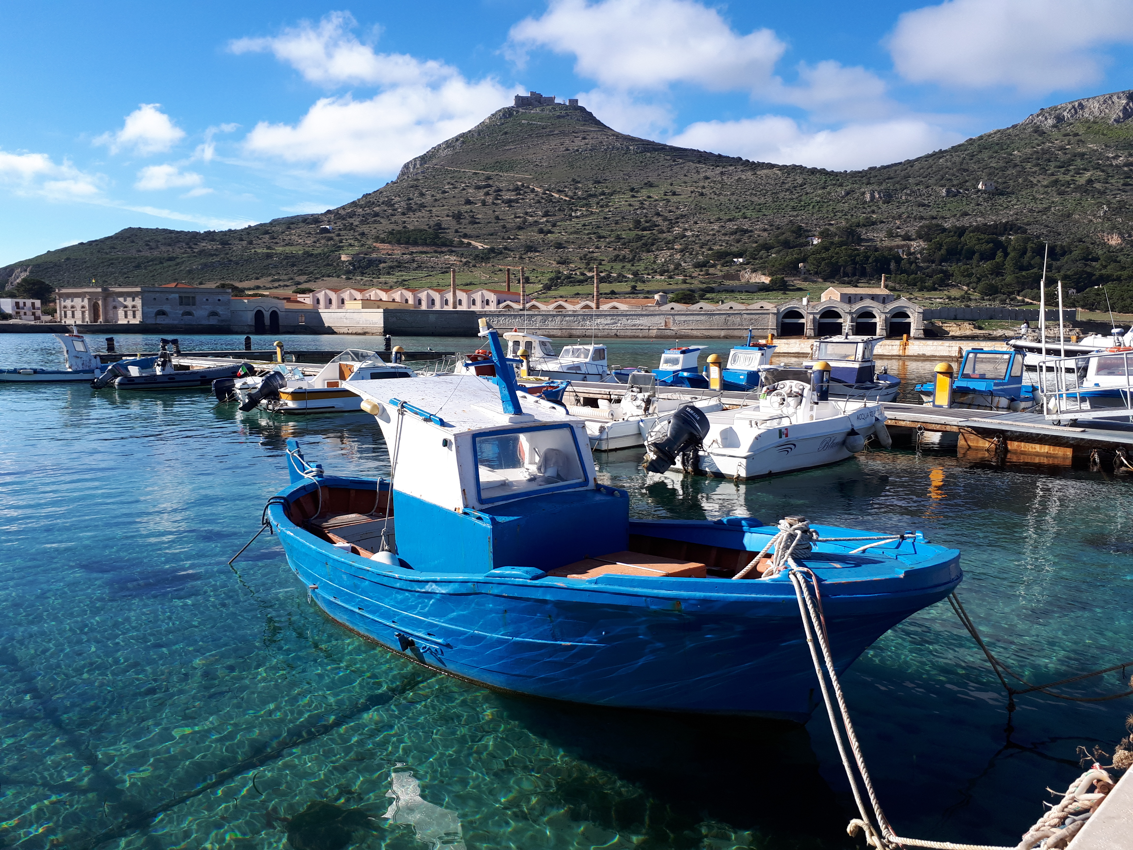 Bonne année a tous du petit port de Favignana (Iles Egades) et avec le sapin de Noel de la grande place de Marsala!