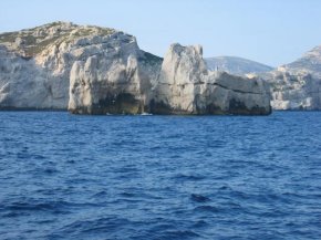 Donc briefing 8 h 45. Sur la ligne 11 h. Départ au prés dans 22 noeuds, un ris dans la grand voile et tout le génois. On fait 25-30 milles pour descendre en rade nord de Marseille virer Frioul, avec un vent mollisant : 18 noeuds en début de rade, 10 noeuds en fond de rade nord et sortie en rade sud dans du 8-10 noeuds. On laisse l'ile de Riou à l'intérieur et on repique à la côte pour virer une tourelle en bais de Cassis, la Cassidaigne, dans un vent mourant.
