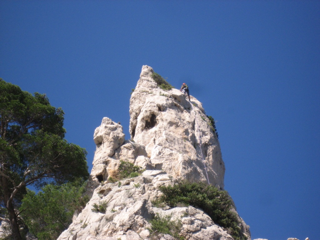 Au mouillage d'En-vau, les araignées humaines surplombent les bateaux...
