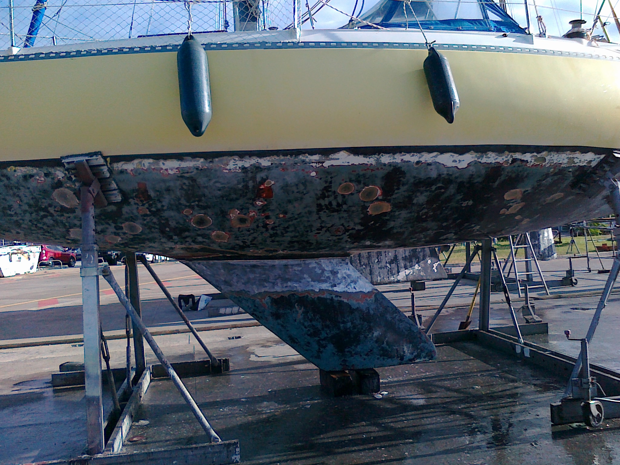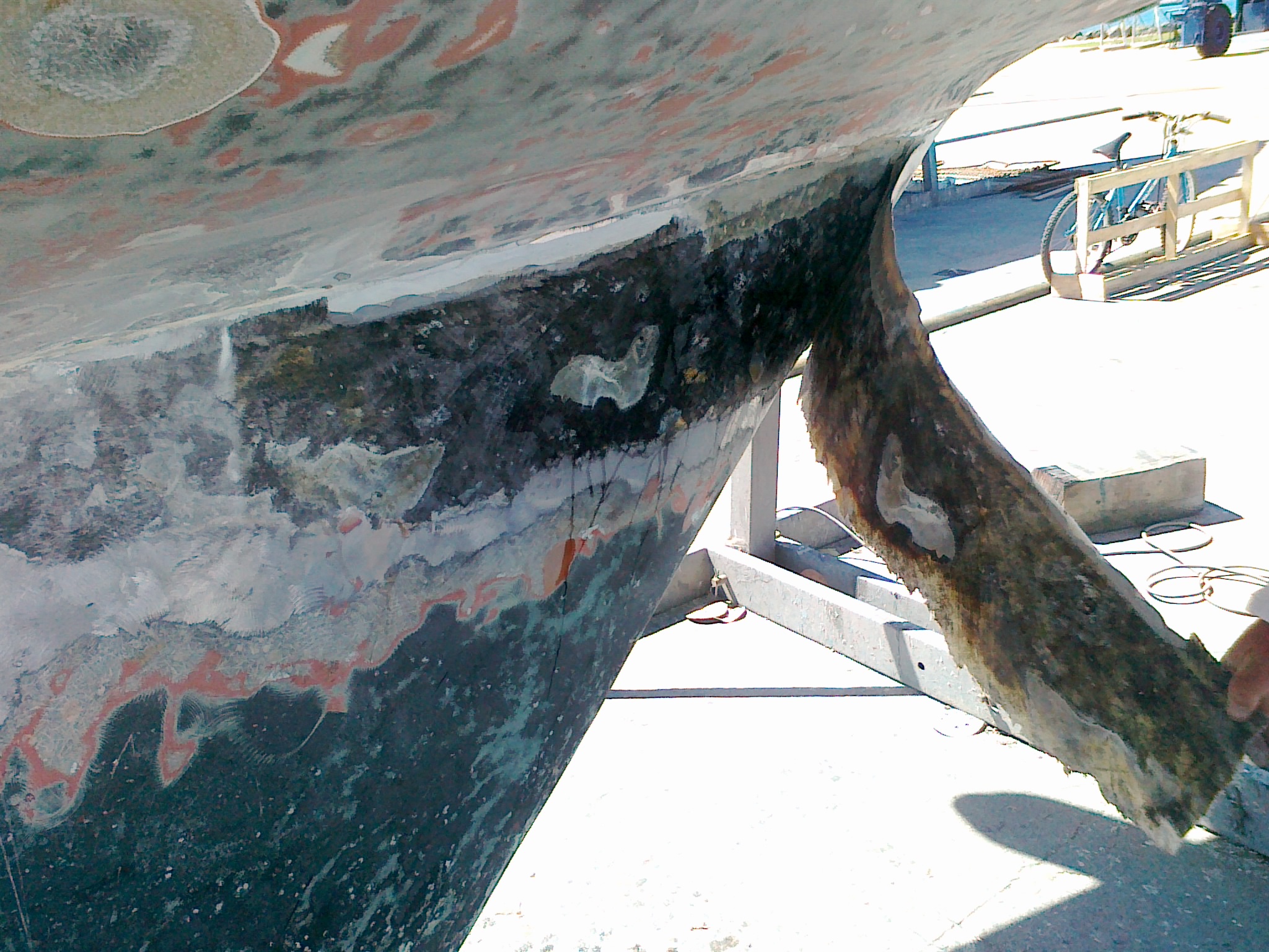 A la jonction quille-coque il y a une espece de semelle dure qui est aussi dégradée à plusieurs endroits.