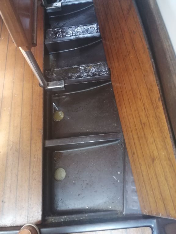 Le moteur est un Yanmar 2GM, refait intégralement il y a 5 ans et entretenu par professionel tous les ans depuis. Bon, le jour de ma visite il a eu du mal à démarrer mais il faisait bien froid...