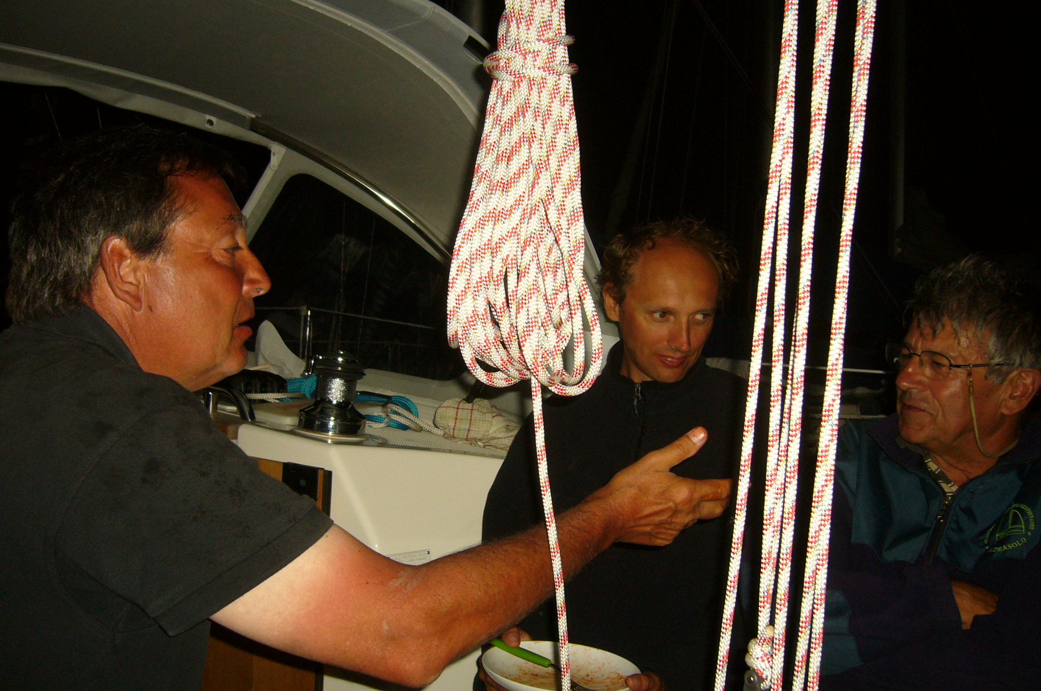 A bord de Gabicha (Cf. en rubrique "les amis"), Jean-François (Kentan), Yvan (Astrolabe) et Patrick (Akka) :