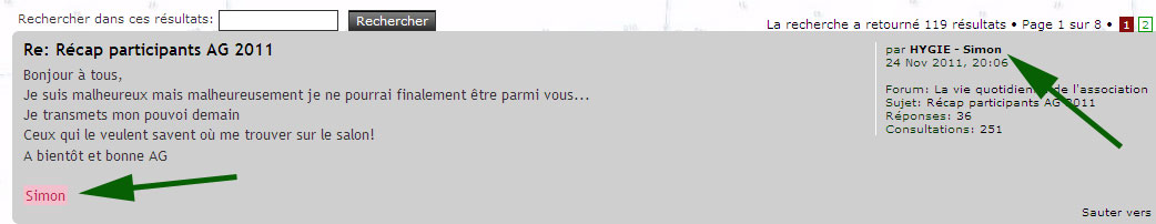 Dans ce cas il suffit de se souvenir à quel endroit on a participé dans le forum pour retrouver son nom. Exemple :