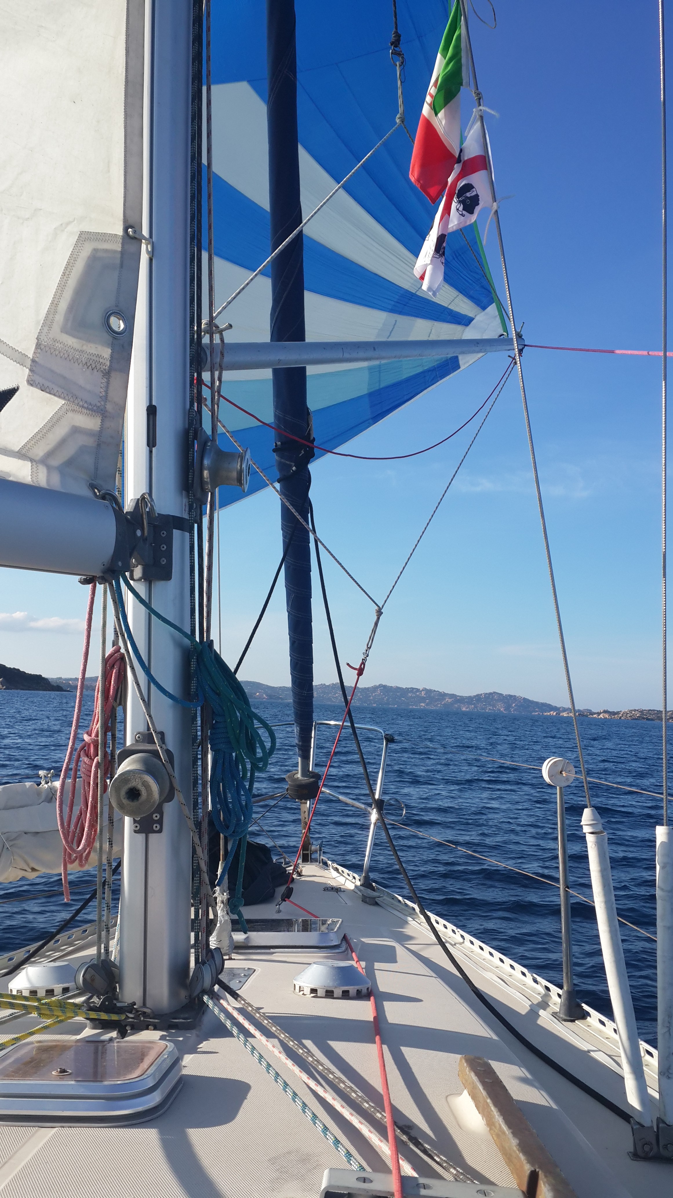 Un peu de spi par ici, quelques dauphins par la, Caprera, Stefano Santo, Maddalena, Spargi, Budelli, Santa Maria, Razzoli, viennent ensuite les Lavezzi puis Bonifacio, fière et droite sur son promontoire, on arrive aux pieds de cette citadelle en se faufilant dans son etroite calanque, bien à l’abri des coups de vent, et propice aux escales prolongées, ça tombe bien, il est temps de fêter Noel, puis viendra la nouvelle année, célébrée dans le vieux port de la charmante petite ville de la Maddalena!