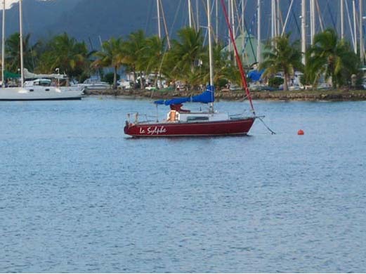 Dès 8 h 30, je prenais possession de mon compagnon de jeu, par grand beau temps, petit force 2 et bonne météo pour la journée. L’intensité de la lumière et la chaleur de ce début de journée m’incitait à me tartiner de crème solaire ; la particularité de l’ensoleillement d’ici, c’est que le soleil est haut dans le ciel, et l’atmosphère des latitudes tropicales aidant, la proportion d’UV A et d’UV B n’est pas la męme que sous nos latitudes et cela chauffe bien, ça bronze pas tant que ça, mais alors ça brûle sévèrement. Les coups de soleil sont vraiment méchants, à se rendre malade et ça arrive très vite, en une demie heure c’est cuit.