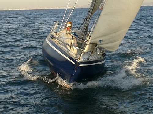 Un First 30 qui s'est promené sur presque toutes les mers. Né en France il est parti aux Antilles pour revenir quelques années après en Bretagne. Depuis 2000 il est descendu en Méditerranée ... pour se rapprocher de son propriétaire Pierre, "l'Amiral", qui s'occupe de l'Association sur place.